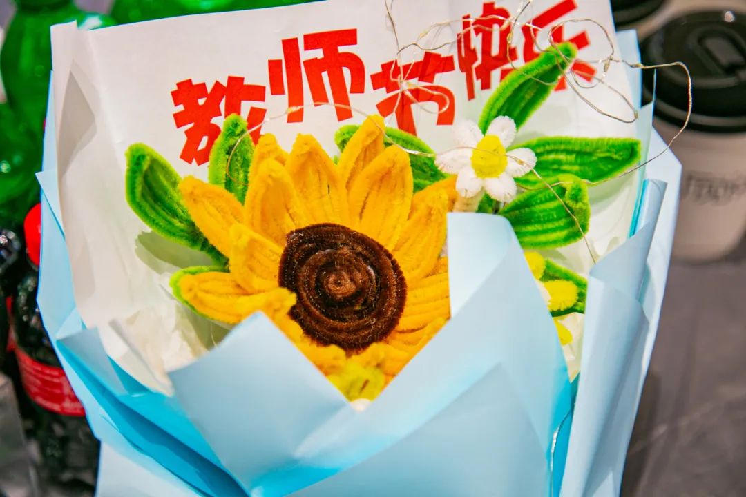 “馬上就要到教師節(jié)了,我要把親手做的花束送給我們老師!”小朋友們異口同聲地說到。本次活動不僅提高了孩子們的動手能力,讓他們體驗到了手工創(chuàng)作的樂趣,也將感恩與祝福的種子播撒在孩子們的心中。