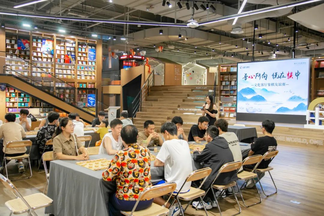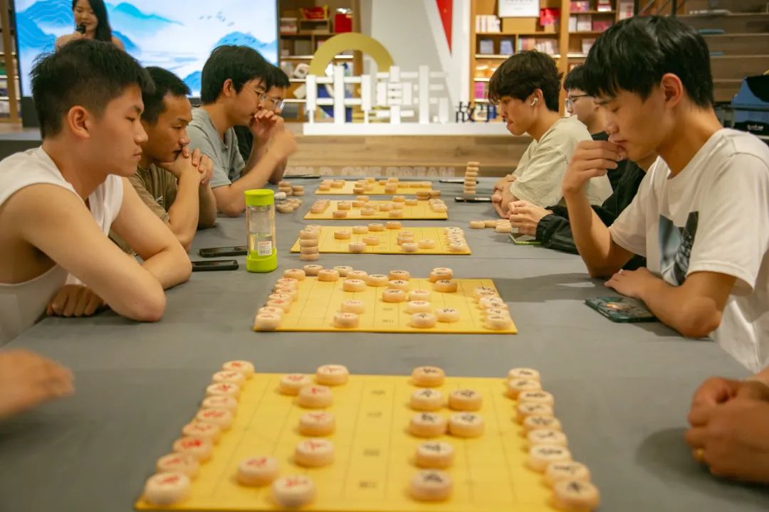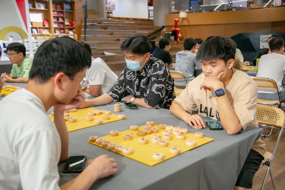 盛夏之夜,晚風習習,棋盤在大廳中央一字排開,參賽選手坐在棋桌前,執(zhí)棋縱盤,神情專注,沉浸在“棋”樂融融的世界中。精彩對弈吸引了眾多觀眾駐足觀戰(zhàn),現(xiàn)場充滿了歡笑與贊美,氣氛十分活躍。