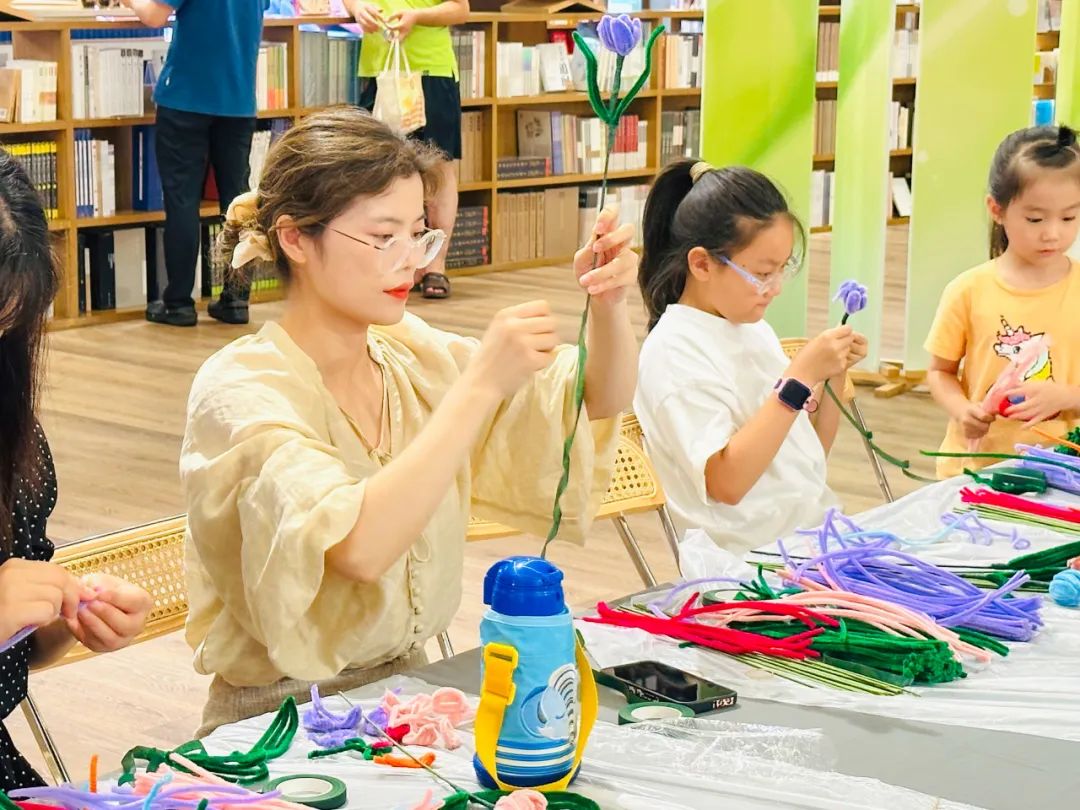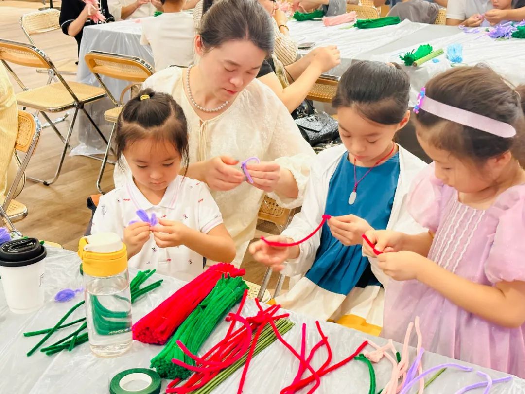 “絨花”諧音“榮華”,歷史十分悠久。一場色彩富麗、工藝精巧的絨花手工制作活動在區(qū)新時代文明實踐中心舉辦。參加活動的小朋友們和家長認真聆聽老師對絨花制作過程的講解,經(jīng)染色、軟化黃銅絲、勾條、打尖、傳花等近十道工序,他們用絨絲變換出各種花的造型,一朵朵具有個人獨特風格的絨花就制作完成了。
