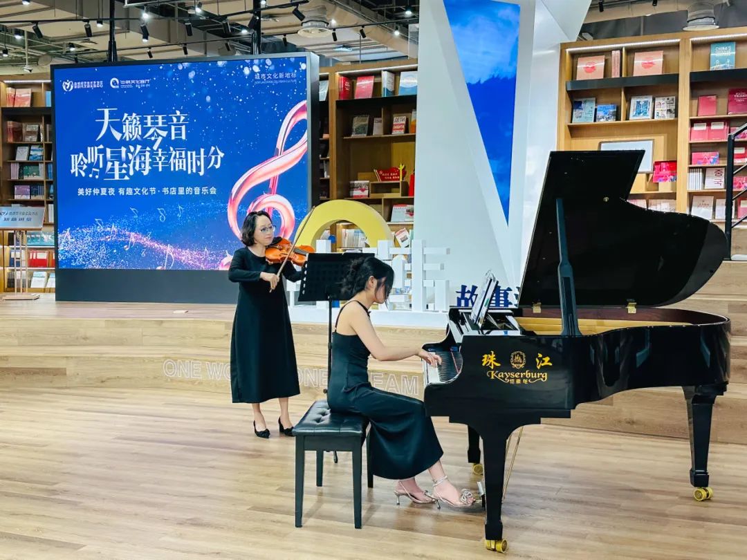 黑白的琴鍵、跳躍的指尖,在區(qū)新時代文明實踐中心一層知新講堂,富有情感的小提琴與節(jié)奏輕快明媚的鋼琴相遇,一曲《卡農(nóng)》拉開了音樂會的序幕。
