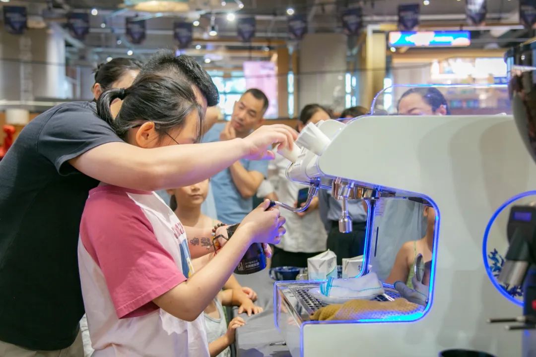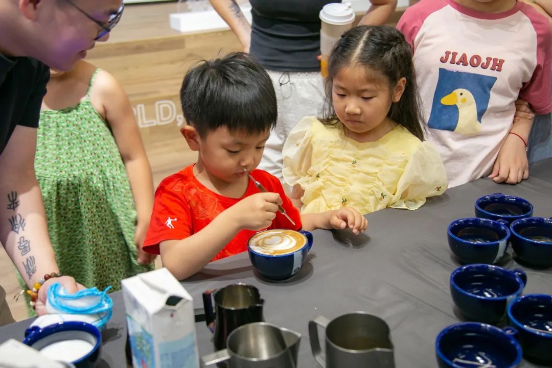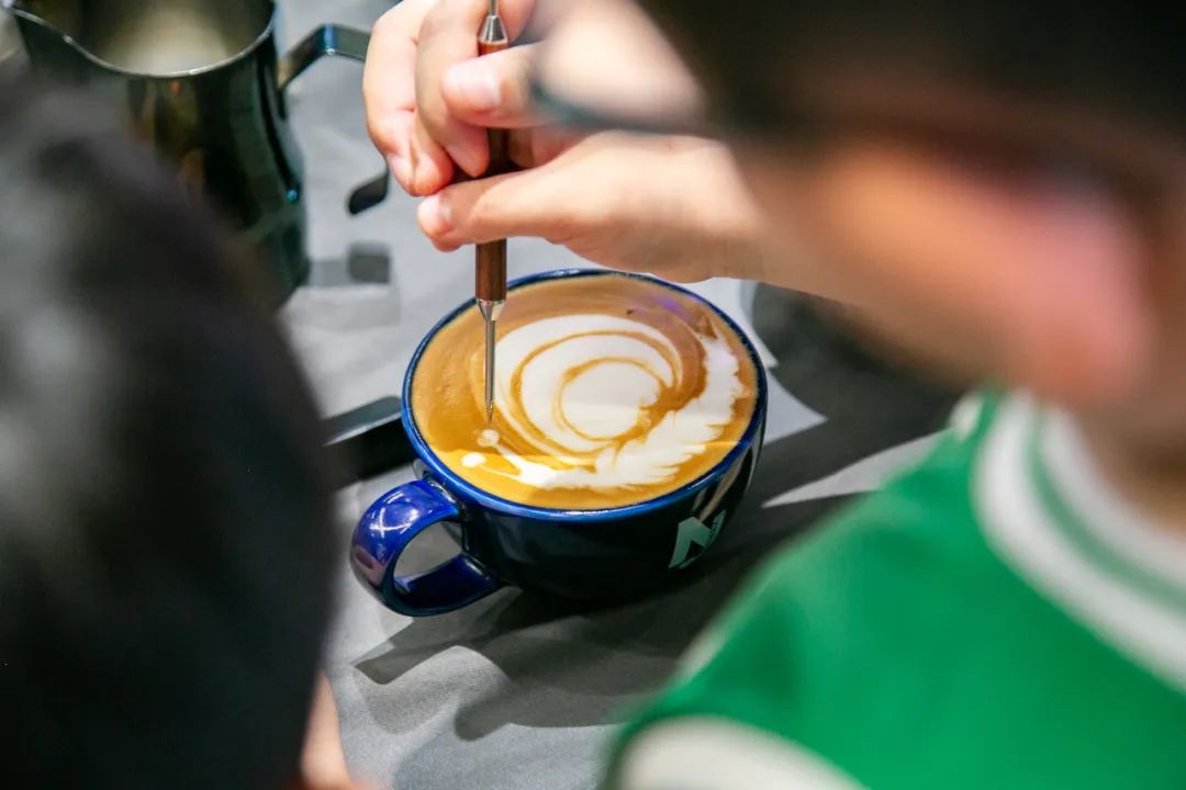 現(xiàn)場(chǎng)氣氛高漲,在咖啡師的指導(dǎo)和幫助下,大家傾斜著咖啡杯輕輕晃動(dòng)著拉花缸,發(fā)揮自己的藝術(shù)創(chuàng)想,制作出一個(gè)個(gè)靈動(dòng)可愛的圖案,度過了一段悠閑的夏日時(shí)光。