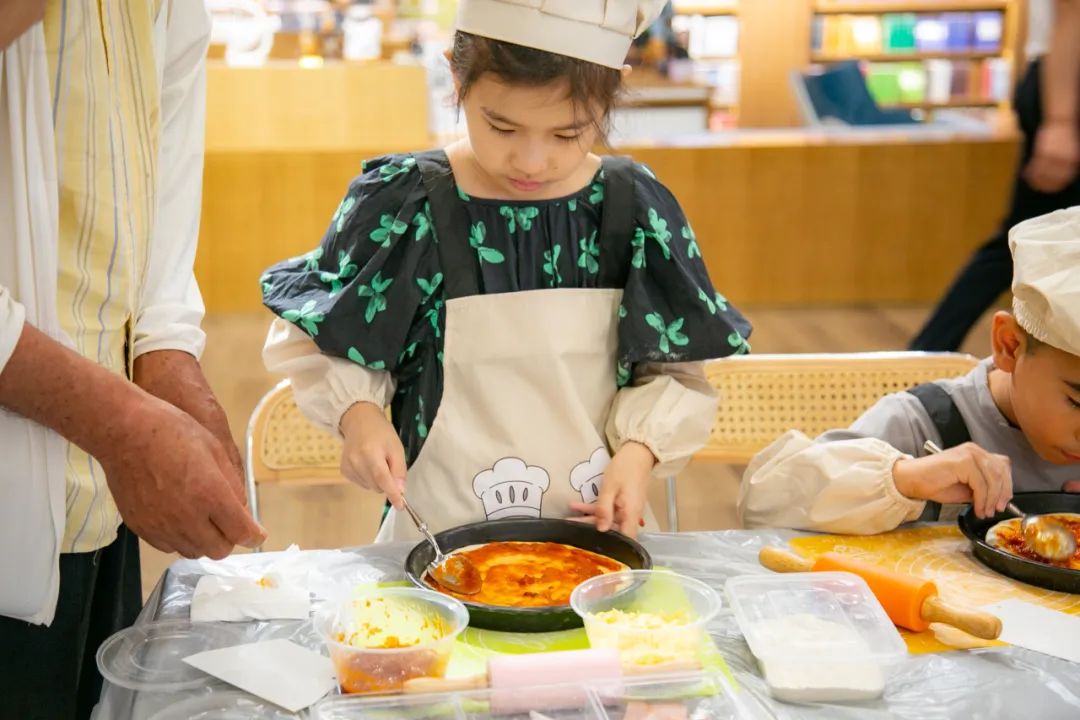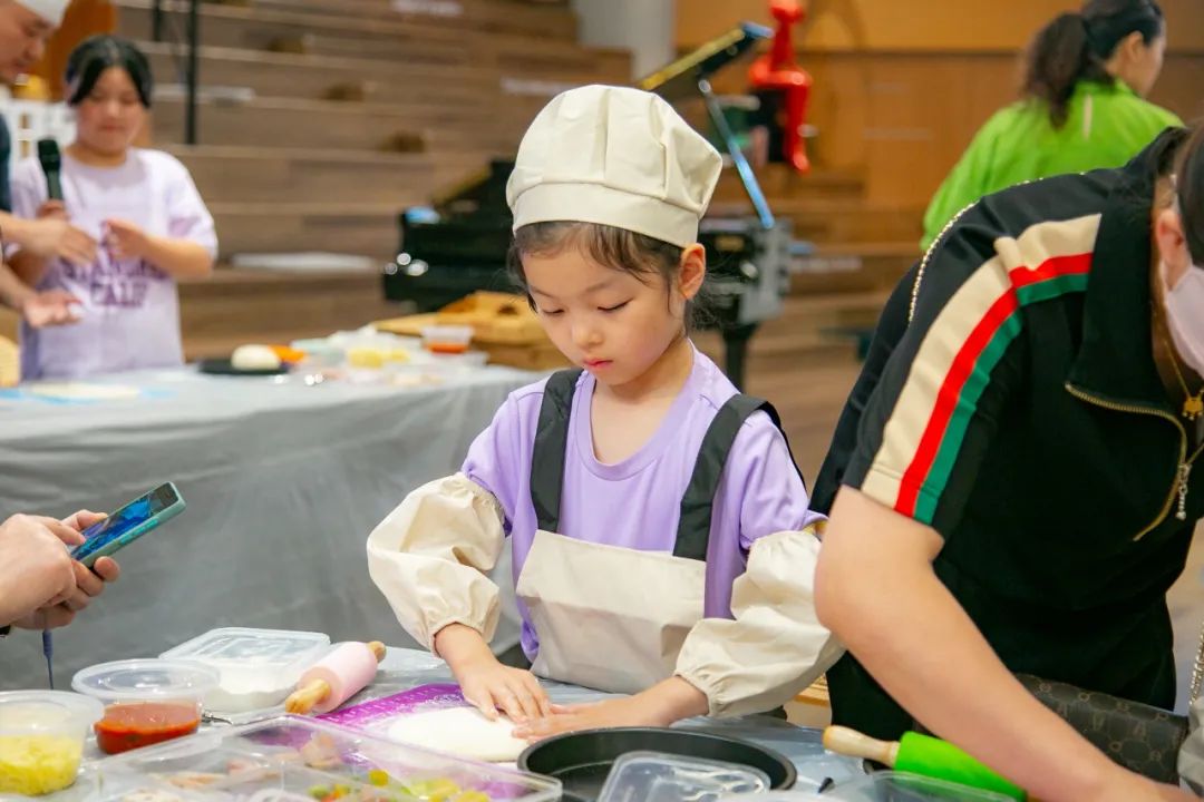 手工披薩DIY活動(dòng)格外受到歡迎,中韓文化客廳特邀專業(yè)廚師,為大家備好所有的材料并現(xiàn)場(chǎng)示范。小朋友們換上小圍裙,秒變小廚師,在家長(zhǎng)和大廚的協(xié)助下,小手生澀地?fù){制面皮,擺放自己喜歡的各種輔料。十幾分鐘后比薩就已經(jīng)陸陸續(xù)續(xù)的烤好,小朋友們迫不及待地與爸爸媽媽分享品嘗親手制作的比薩,現(xiàn)場(chǎng)溫馨甜蜜,每一瞬間都是愛與幸福的美好定格。