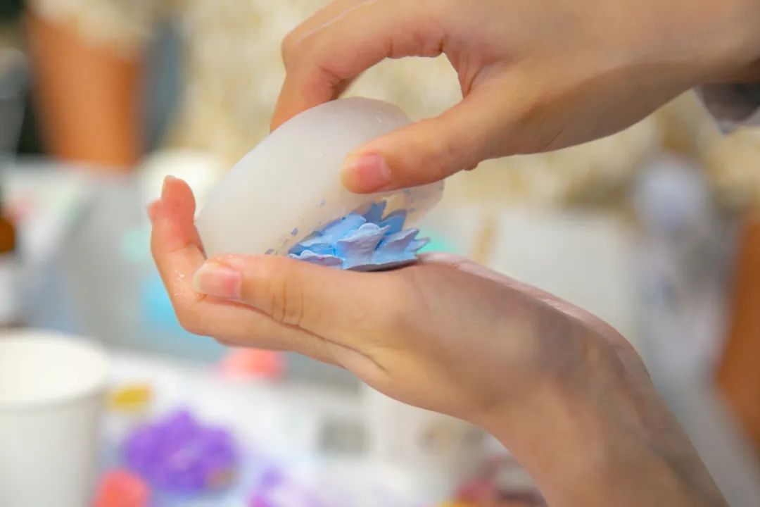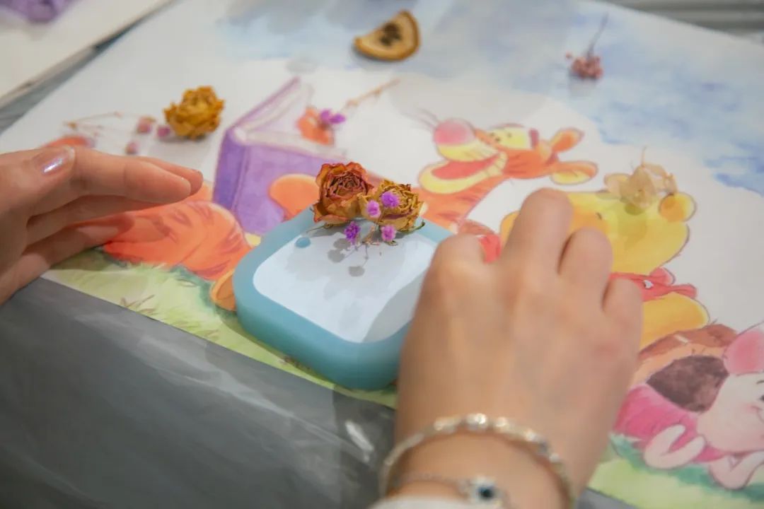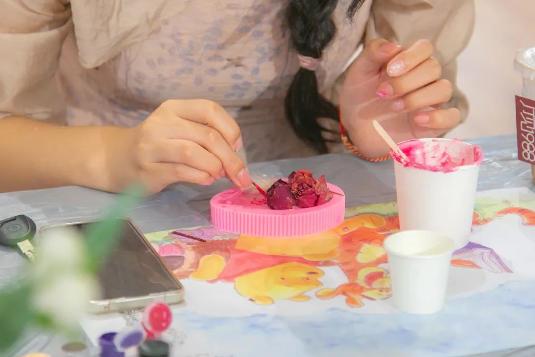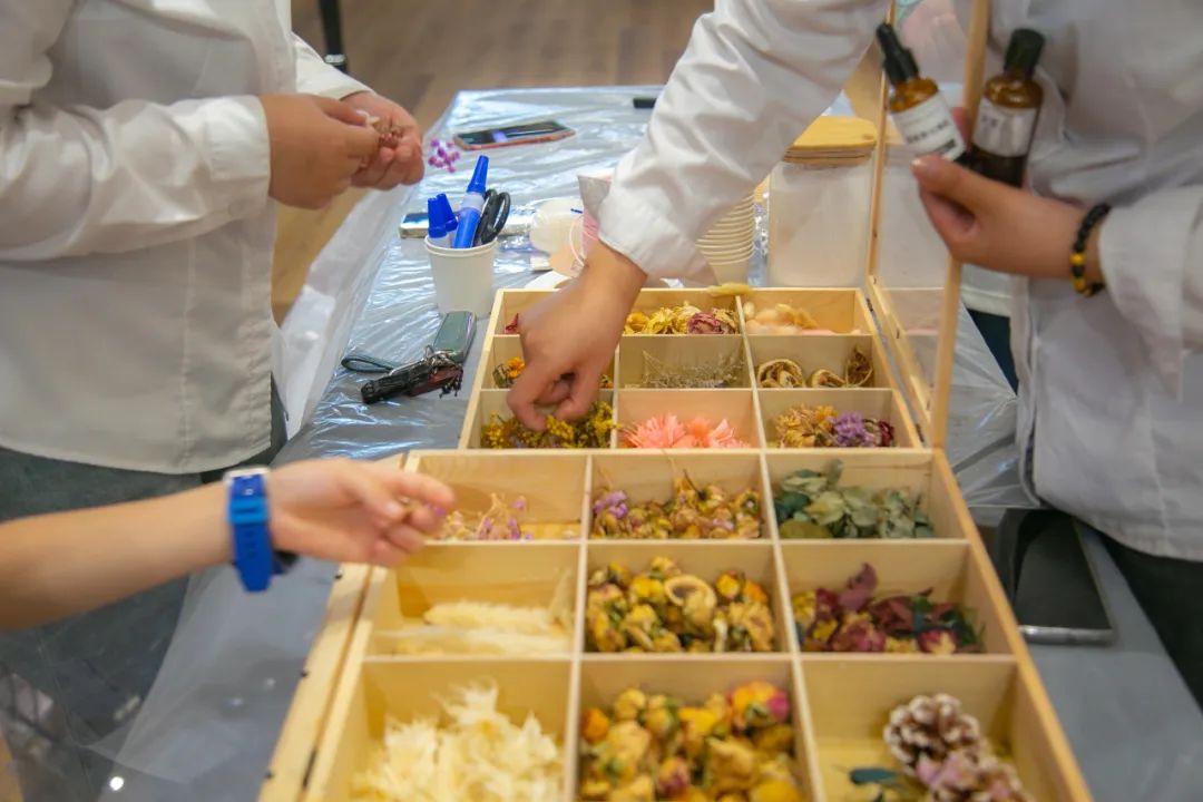 構(gòu)思造型、融化原蠟、滴入精油,再加上各式干花點(diǎn)綴,一個(gè)個(gè)造型各異、芬芳濃郁的干花香薰掛牌便制作完成了,擁有了一份屬于自己的獨(dú)特芬芳。