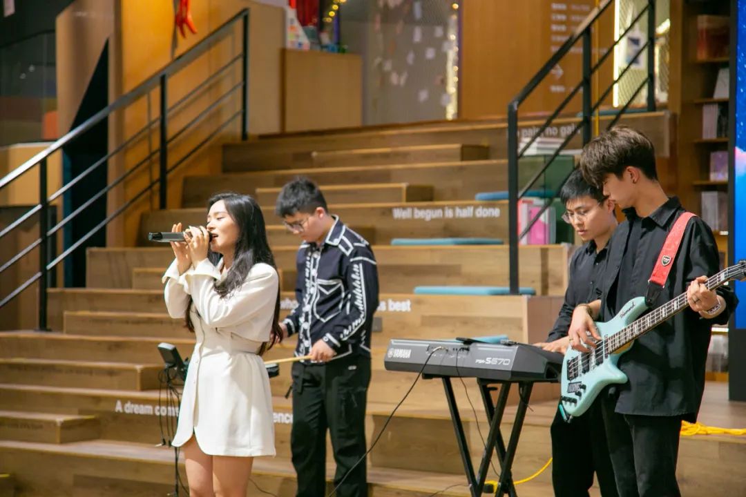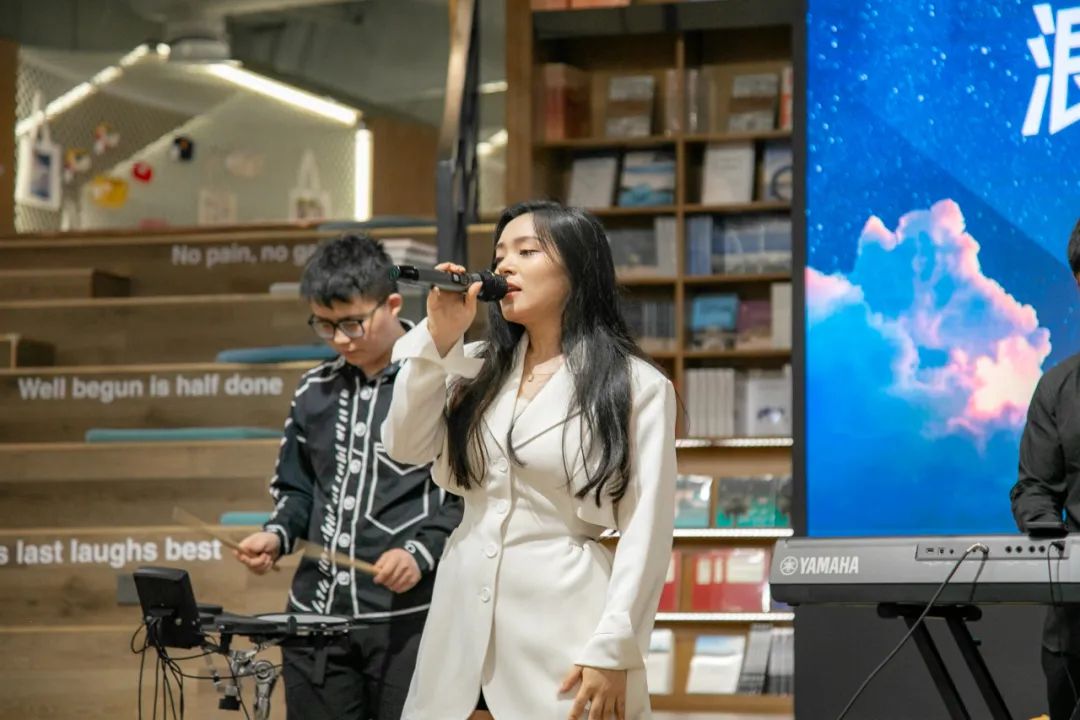 音浪起伏,中韓文化客廳里書海與樂隊(duì)碰撞出想象,浪漫和熱情被live喚醒。