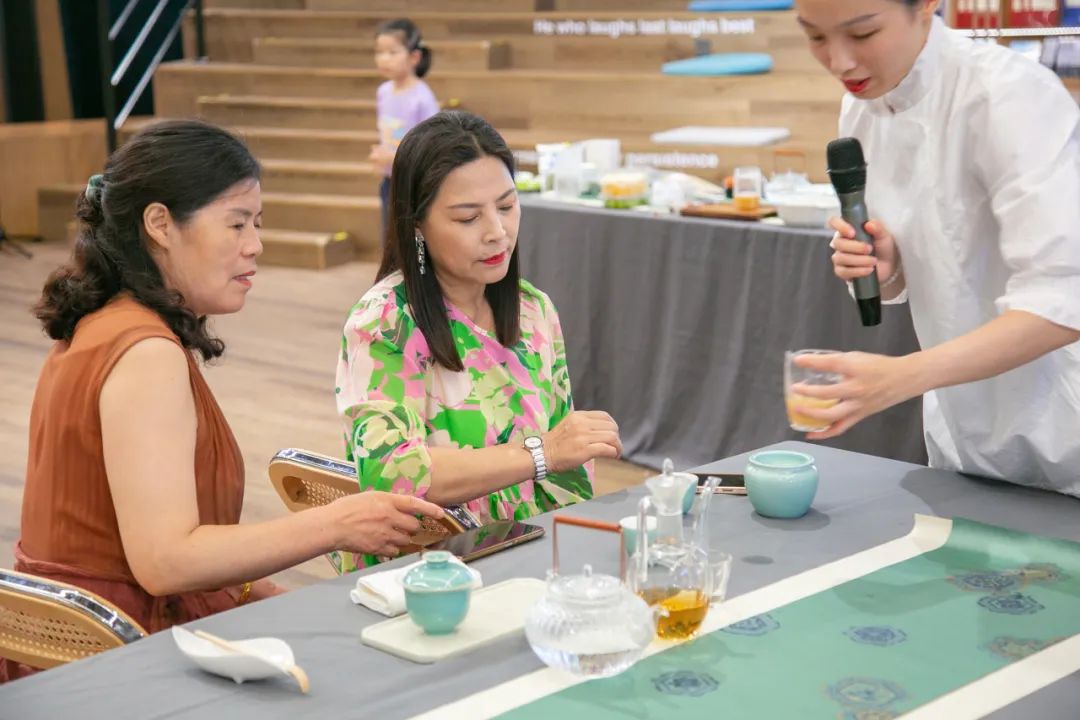 茶藝?yán)蠋煘榇蠹規(guī)碛嘘P(guān)夏日飲茶知識(shí),對(duì)茶葉的挑選、烹茶的方法 、泡茶的技巧逐一講解。在老師的指導(dǎo)下,茶客們嘗試沖泡、倒茶、品飲……現(xiàn)場(chǎng)彌漫著淡淡的茶香 ,清透涼爽的冷泡茶沁潤(rùn)心田,化解了夏季的酷熱。