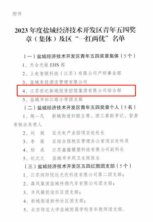 集團(tuán)綜合部榮獲鹽城經(jīng)開區(qū)青年五四獎(jiǎng)?wù)录w