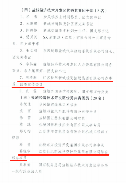 近日,鹽城市總工會(huì)下發(fā)《關(guān)于表彰鹽城市女職工先進(jìn)集體和先進(jìn)個(gè)人的決定》,鹽城經(jīng)濟(jì)技術(shù)開發(fā)區(qū)團(tuán)工委《關(guān)于公布 2023 年鹽城經(jīng)濟(jì)技術(shù)開發(fā)區(qū)青年五四獎(jiǎng)?wù)?集體)、五四紅旗團(tuán)支部(總支)、優(yōu)秀共青團(tuán)員、優(yōu)秀共青團(tuán)干部名單的通知》,表彰了集團(tuán)一批先進(jìn)集體和個(gè)人。