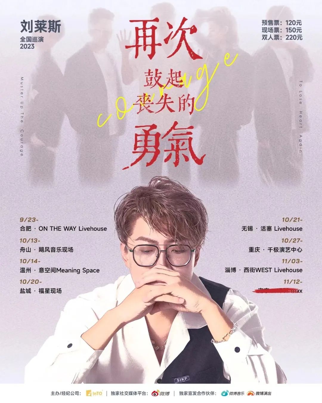 “有人問(wèn)我粥可暖 有人與我立黃昏”從《浮生》《留在南京》《押一付三》到《冬天溫暖的詩(shī)》《砰砰》《快把星星摘給我吧》他的每一首歌都能唱進(jìn)人的心里。像能聽(tīng)見(jiàn)夏日聒噪的蟬鳴、喝到山城的啤酒,劉萊斯溫暖的聲線總會(huì)直擊心靈深處最柔軟的地方......10.20[再次鼓起喪失的勇氣]我們不見(jiàn)不散!