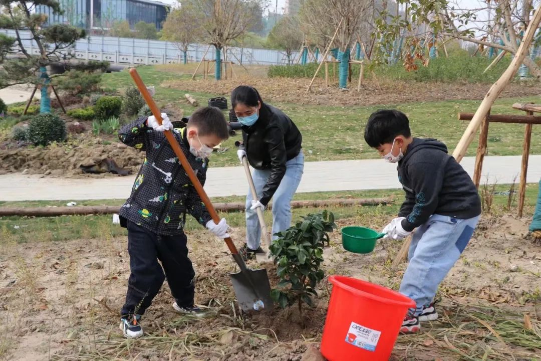 集團職工志愿者還帶領自家的小志愿者們也一同參與到義務植樹的活動中來,感受著親近大自然的快樂,培養(yǎng)小朋友們愛護環(huán)境的意識和愛勞動的良好習慣?;顒又校毠ぶ驹刚呦仁菍θ绾畏N樹進行示范,小志愿者們觀看得認真,干得更是起勁,懷著對綠色生命的渴盼與尊重,扶苗、填土、澆水,道道工序都做得認真、仔細,小志愿者們把一棵棵小樹苗栽種下去,同時也把熱愛自然的希望植入了心中,為大地增添了一份活力。