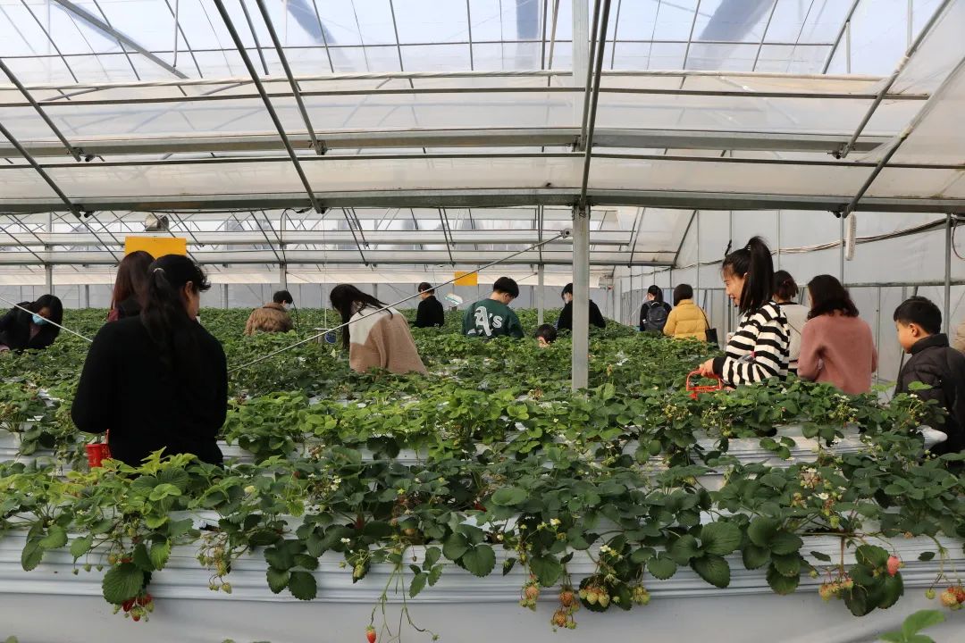 3月4日上午,大家統(tǒng)一乘坐大巴到達(dá)鹽都區(qū)仰徐草莓采摘園。一踏入草莓大棚,放眼望去,一壟壟翠綠的植株之間,色澤艷麗的草莓在綠葉中若隱若現(xiàn),綠紅交織,相映成輝。如此景象,女神們紛紛化身快樂的“小果農(nóng)”,手持小果籃,爭先恐后地穿梭于園內(nèi),與藏匿于綠葉下的草莓來一場美好的邂逅。