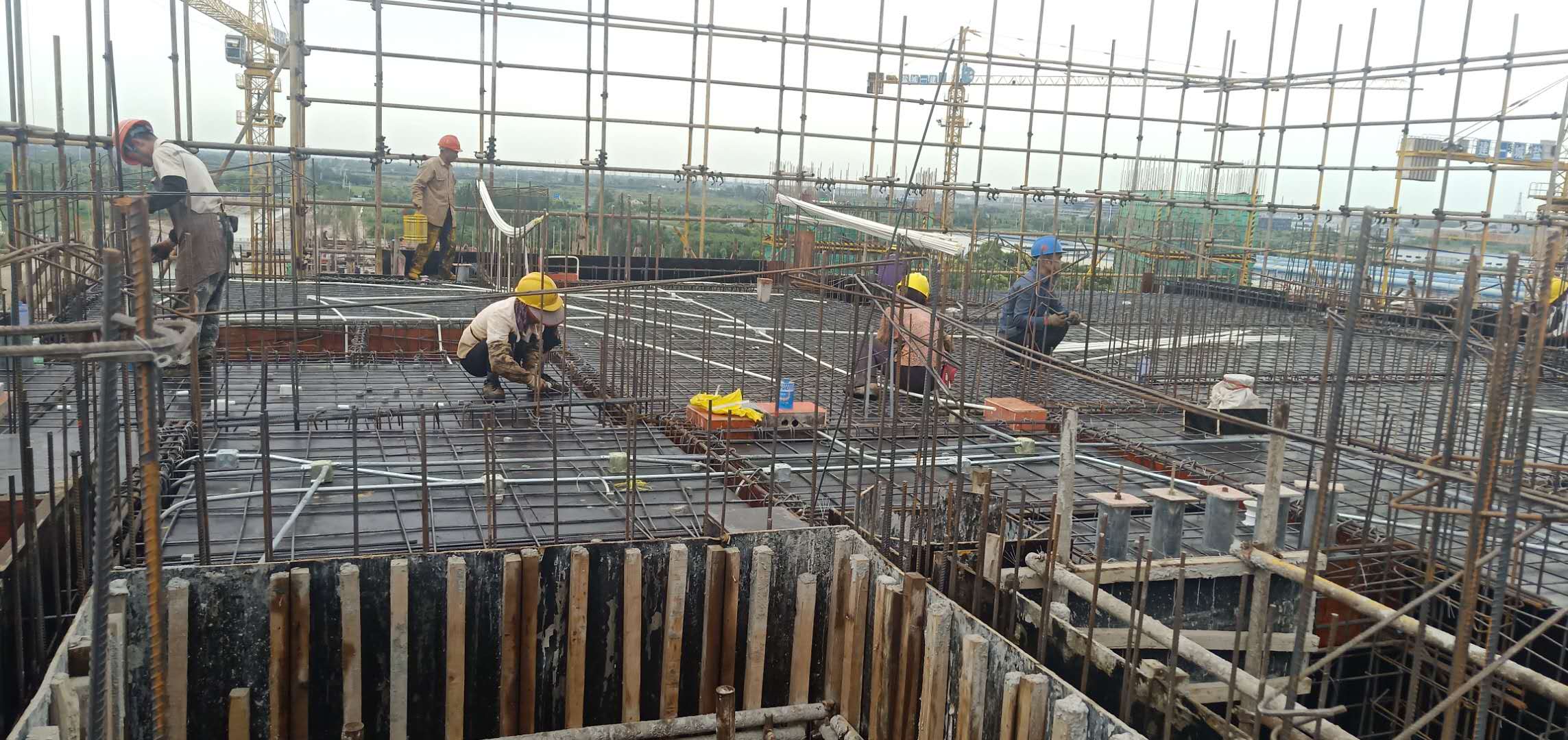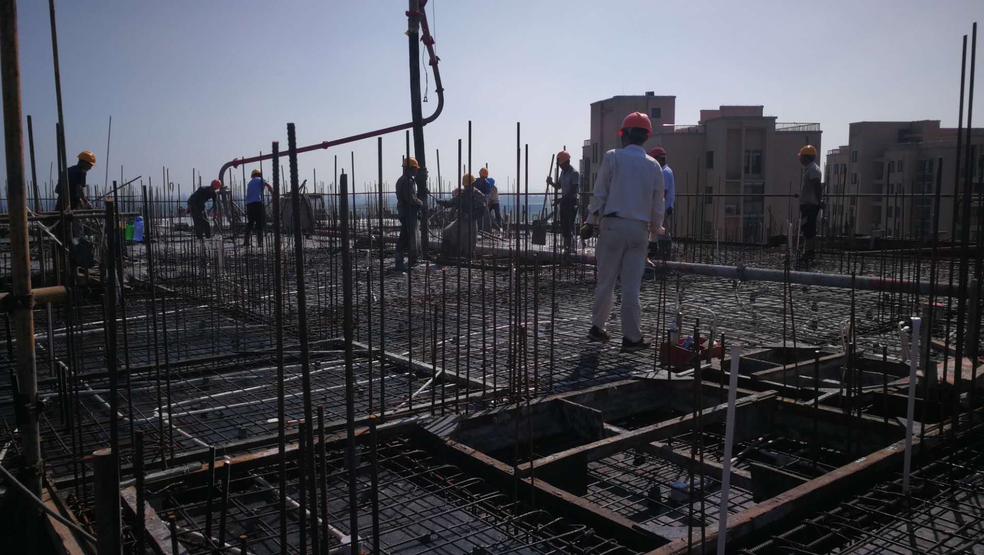 走進(jìn)施工現(xiàn)場,施工人員有的在澆筑混凝土,有的在綁扎鋼筋,有的在拆除模板,有的在預(yù)埋水電管道,有的在操作鋼筋加工設(shè)備……
