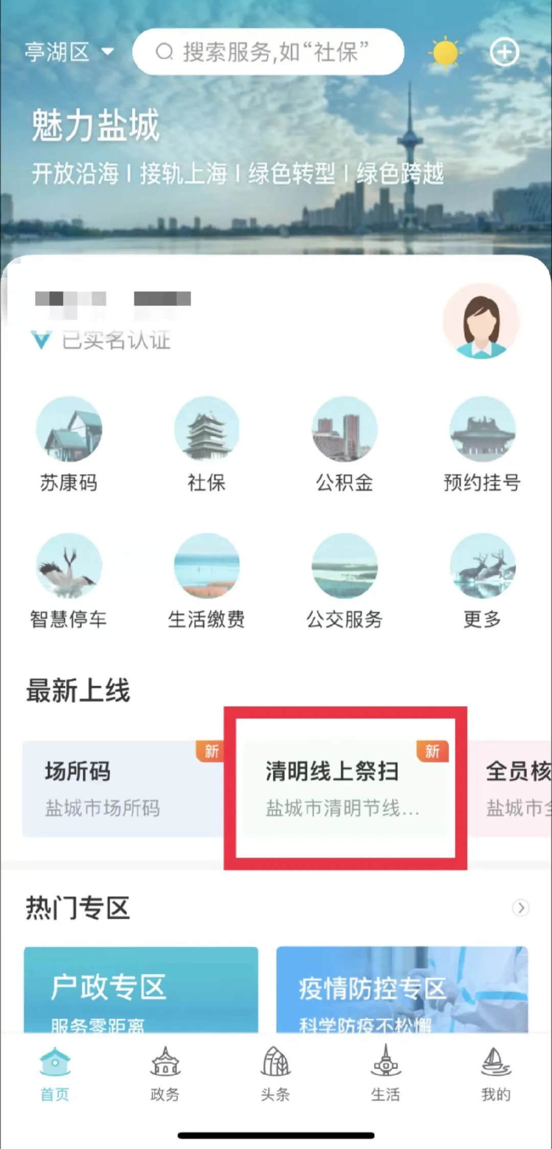 1、打開“我的鹽城”APP—“清明線上祭掃”模塊