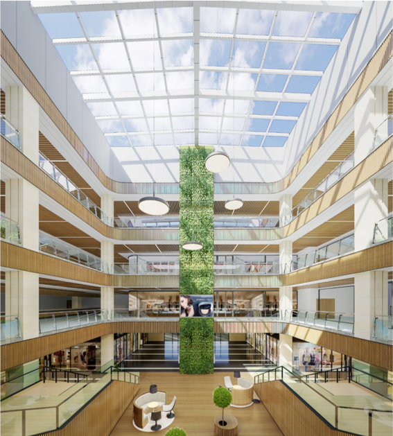 一層業(yè)態(tài)主要以生活服務為主,同時在入口處設置有接待臺和信息發(fā)布等公共務設施。