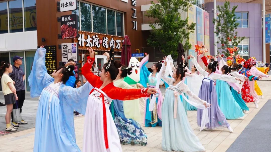 寫首爾夜市裙裾飄飄的巡游隊(duì)伍,