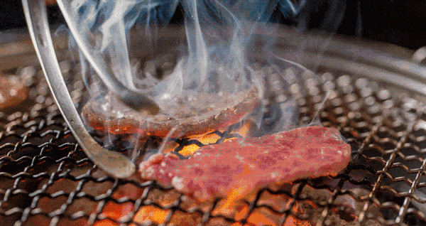 寫火焰在烤肉架上跳動(dòng),煙霧裊裊升起,