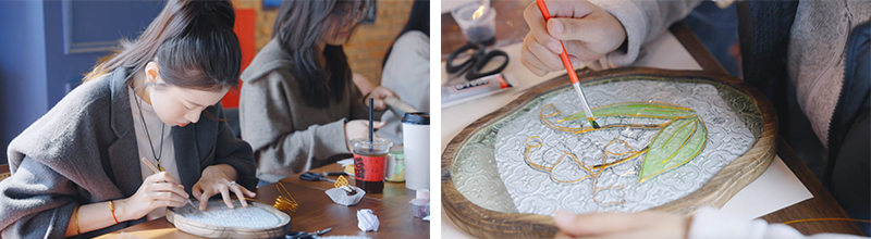 “這個曲線好難固定呀!”“這個需要巧勁和耐心,你用鑷子引導(dǎo)試試。”活動中大家認(rèn)真聆聽制作方法,興致盎然地討論制作心得。經(jīng)過掐絲、琺瑯彩填充和燒制,看似普通的金絲奇跡般地構(gòu)成了一個又一個精巧細(xì)致的圖案,散發(fā)出立體、流暢的美感。一縷金絲流轉(zhuǎn),掐出指尖上的非遺之美,大家在專注、歡樂的時(shí)光中深深感受到了中國傳統(tǒng)非遺文化的魅力。