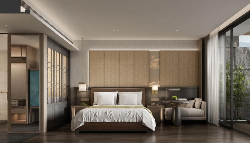 49間特色客房,間間有景,各自成趣。47㎡觀園陽臺房推窗見綠,自帶浴缸私享靜謐時光;34-43㎡寵物主題房貼心設(shè)計攜寵空間,萌爪樂園讓毛孩子盡情撒歡;庭院泡池房氤氳溫暖水汽,家庭房與親子房為孩童預(yù)留歡笑空間;106㎡豪華套房更將詩意棲居推向極致。每一處細(xì)節(jié)兼顧功能與美學(xué),讓“大隱隱于市”的夢想照進(jìn)現(xiàn)實。