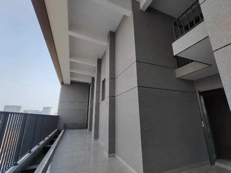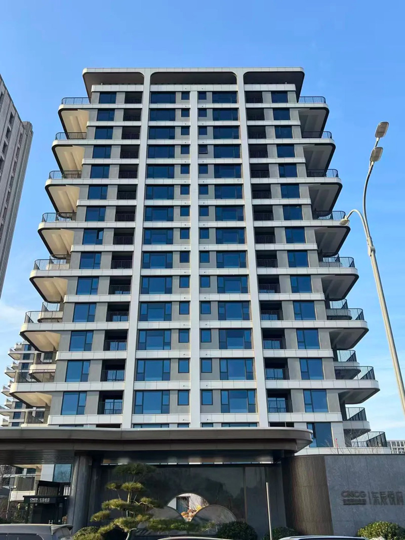 外墻工程已全面完工,鋁板線條利落流暢,一至三層石材一體化板質感十足,真石漆色澤均勻,搭配規(guī)范安裝的門窗與欄桿,整體建筑形象簡約大氣、品質卓然。項目創(chuàng)新采用百分百防水涂層工藝,讓業(yè)主居住更安心。