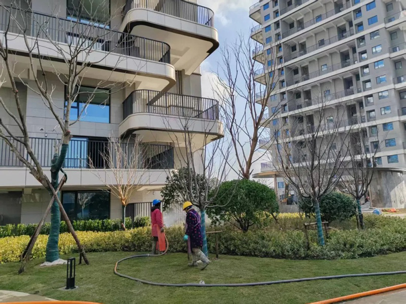 綠化工程亦全部結束,正在進行養(yǎng)護、層次修剪,喬木、球類及地被植物多樣化的綠植搭配、高價值的喬木品種,共同勾勒出層次豐富、四季常綠的生態(tài)社區(qū)畫卷。
