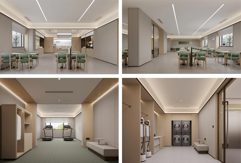 不止于住,更是一站式旅居體驗(yàn)。健身區(qū)專業(yè)設(shè)備隨時解鎖活力,洗衣區(qū)智能洗烘一體機(jī)與掛燙設(shè)備輕松解決出行煩惱,茶空間雅致氛圍兼顧商務(wù)洽談與社交需求,讓每一段旅程都從容愜意。