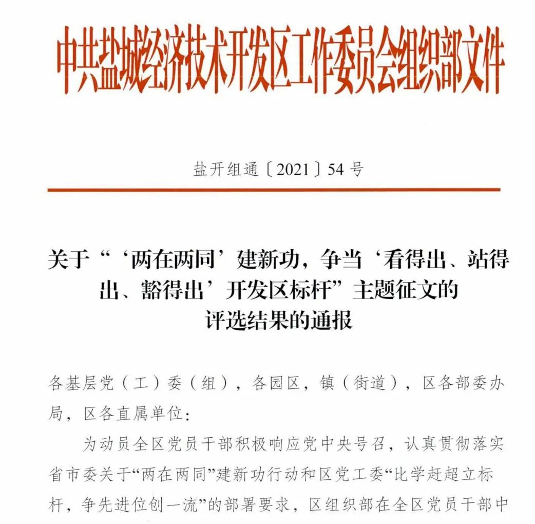 近日,“‘兩在兩同’建新功,爭當‘看得出、站得出、豁得出’開發(fā)區(qū)標桿”主題征文評選結果揭曉,集團將一等獎、優(yōu)秀組織獎等殊榮收入囊中,彰顯了集團員工爭當表率、爭做示范的先鋒模范風采。